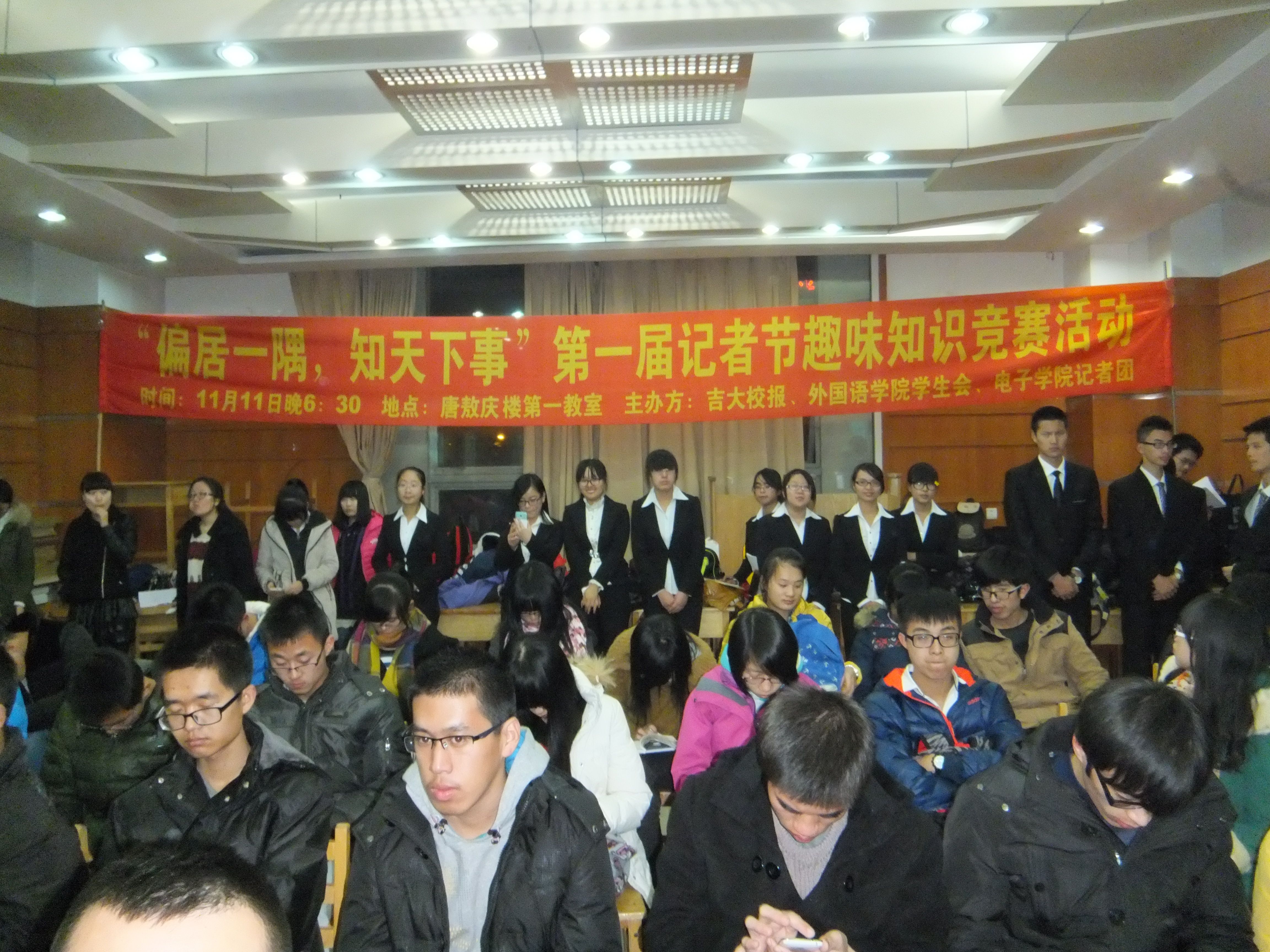 、电子科学与工程学院、《吉林大学报》大学生通讯社在唐敖庆楼联合举办了以“偏居一隅,知天下事”为主题的首届记者节趣味知识竞赛活动,共有自两个学院的25名学生参赛。