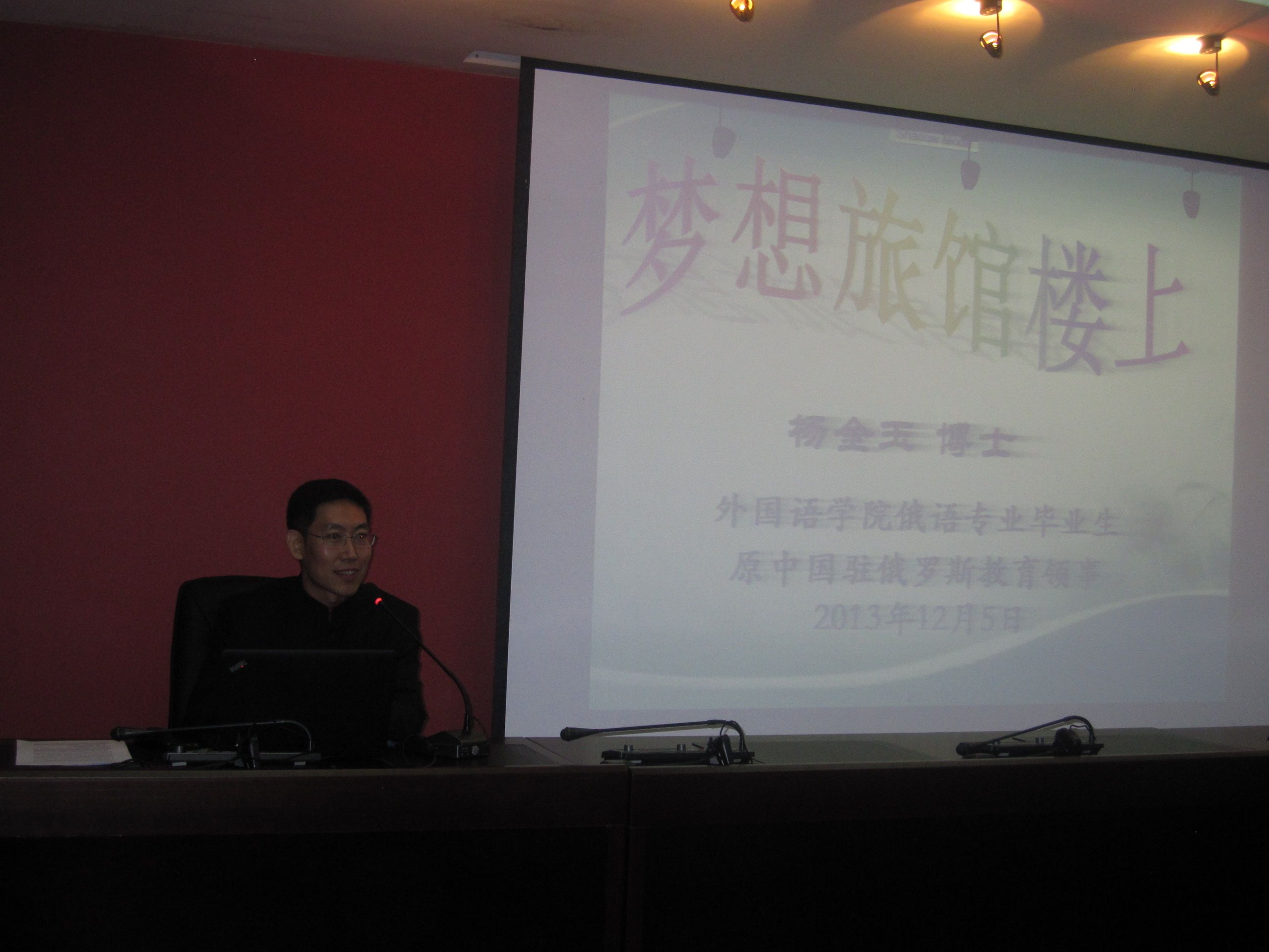 1998届俄语专业毕业生、原中国驻俄罗斯教育领事杨金玉博士在外语楼501会议室为同学们带来《梦想旅馆楼上》。时时彩论坛