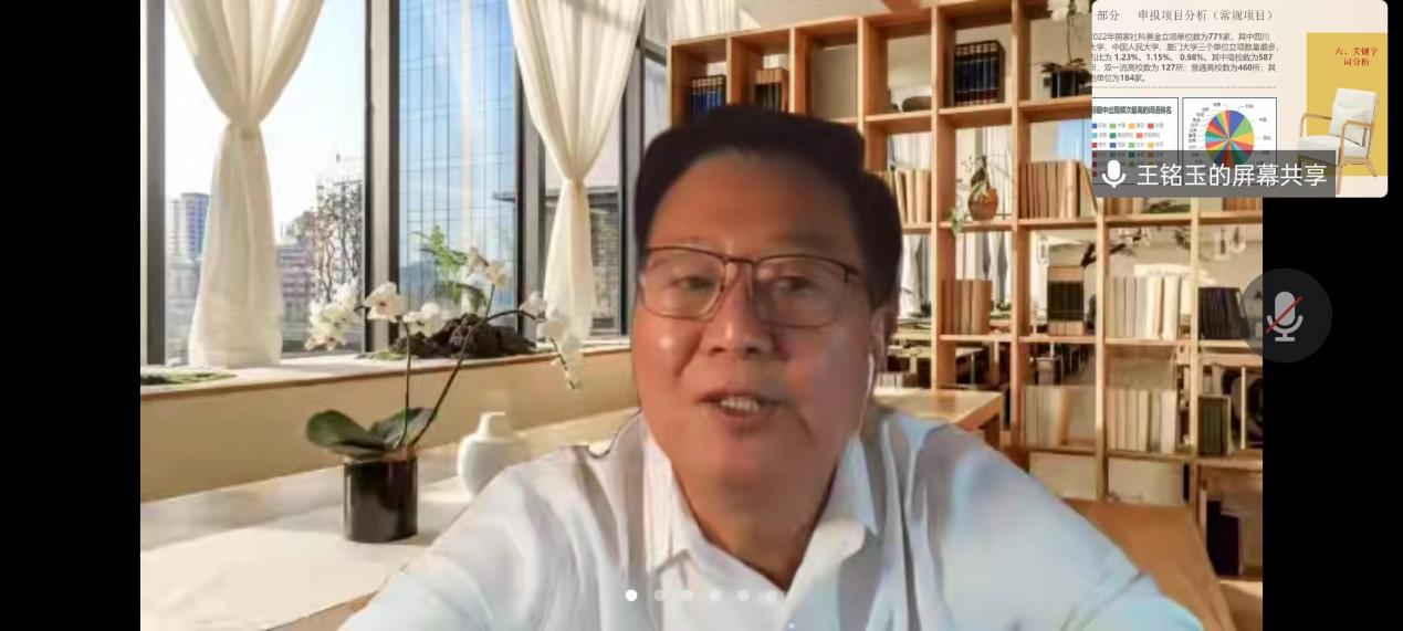 为帮助学院教师明确国家社科基金项目申报方向,提高国家社科基金项目申报质量,2022年12月15日晚,天津外国语大学原副校长、翻译与跨文化传播研究院院长、中国逻辑学会符号学专业委员会主任委员、中国语言与符号学研究会会长、中央编译局国家高端智库核心团队成员王铭玉通过腾讯会议平台做了一场主题为“社科基金申报信息与成果分享”的线上讲座。吉林大学社会科学研究院和时时彩论坛