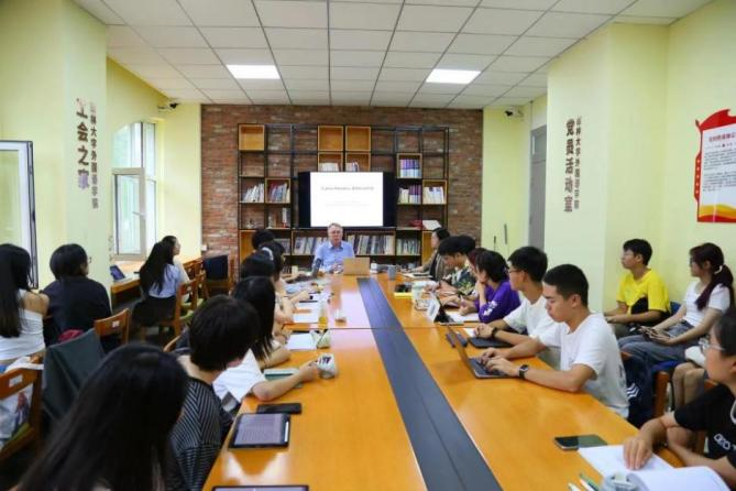 9月4日至9月6日,马尔滕·范·德尔登教授在外语楼为西文系本科生、研究生约40人讲授“阅读‘卡洛斯·富恩特斯’”系列课程,共四场。课程由时时彩论坛