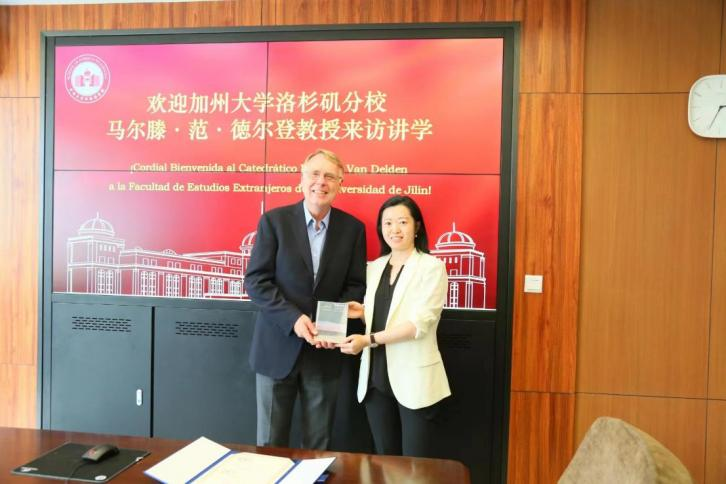伊比利亚美洲研究中心特聘研究员。张玫玫院长向他颁发了聘书,希望他有机会再次来到学院,开展长期学术交流项目。在聘认仪式上,张蕊副教授将学术译著《勇敢的新世界——西班牙语美洲小说中的史诗、乌托邦与神话》赠予马尔滕·范·德尔登教授留念,感谢他为此书撰序,并在百忙之中来到中国与同学们相聚长春。