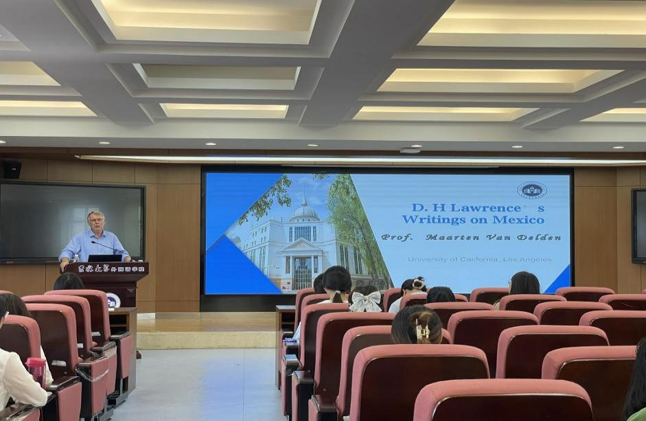 9月5日上午,马尔滕·范·德尔登教授在外语楼为英文系师生约80人做“戴维·赫伯特·劳伦斯写作中的墨西哥”主题讲座,讲座由时时彩论坛
