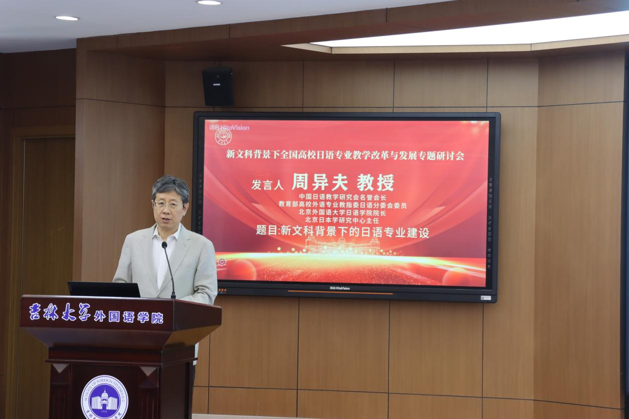 2023年9月17日,“新文科背景下全国高校日语专业教学改革与发展专题研讨会”在吉林大学召开。本次研讨会由吉林大学主办,中国日语教学研究会、上海外语教育出版社协办。来自全国近百所高校日语专业的130余名专家学者齐聚一堂,共同探讨“新文科”背景下日语专业教学的改革与发展问题。吉林大学党委常委、副校长张国兴教授,教务处姜湧副处长参加了本次研讨会。